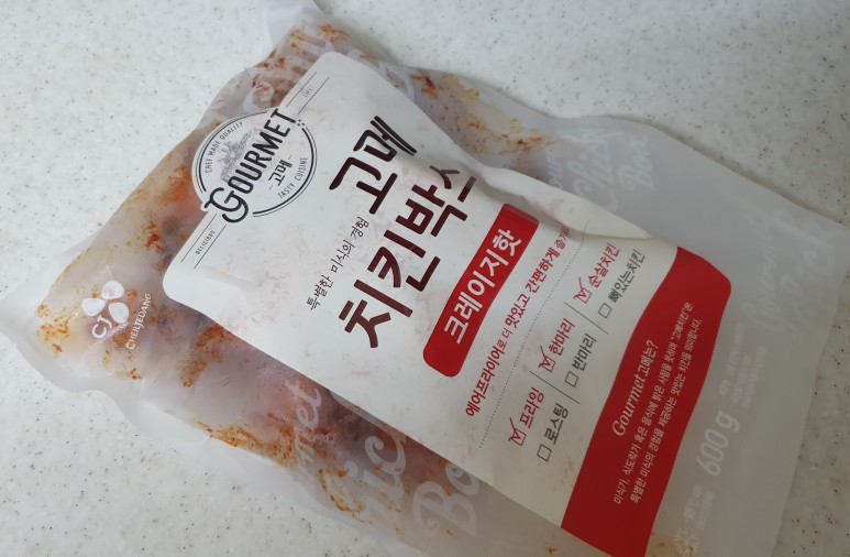 지난 번 구매했던 고메 치킨박스 로스트는 뼈 있는 제품으로 550g이었는데 이 제품은 순살로 600g이다.