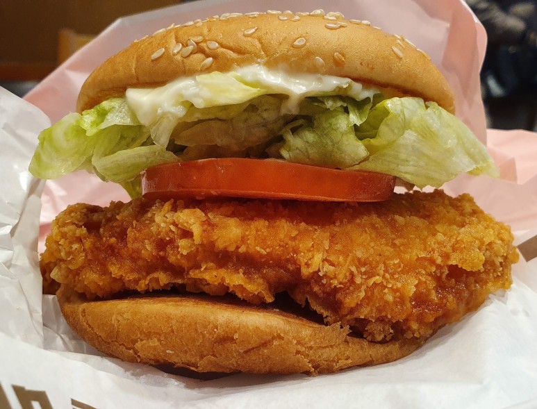 하지만 막상 씹고 보니 그 정도는 아니고 그냥 납작한 치킨이 안에 들어있었다. 납작하다고 생각할 수밖에 없는 이유는 맘스터치의 싸이버거와 너무 두툼함의 차이가 크기 때문이다.