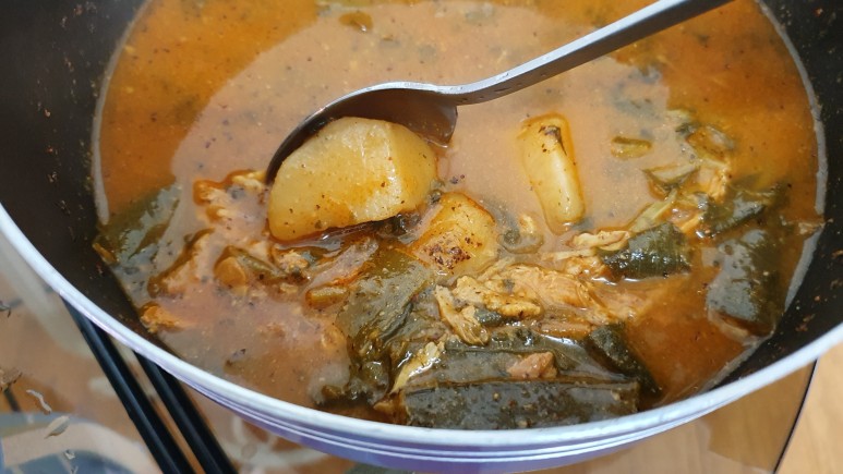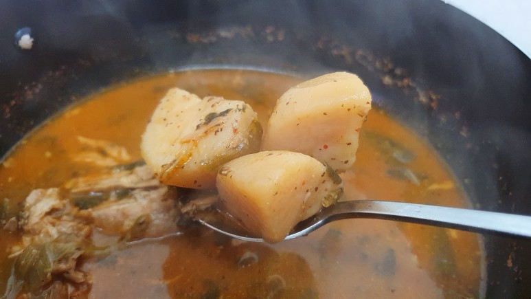 내가 요리한 것도 아닌데 한 번 간을 봤다. 국물도 감자탕의 그 국물이 제대로 재현이 되어있어서 좋았다. 국물의 맛도 역시 맛도 역시 우리가 아는 그 감자탕의 맛이었다. 심지어 맛있다!