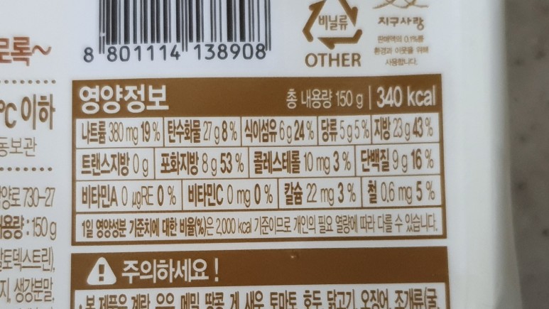 조리방법은 위에서도 이야기했듯이 전자레인지에 2분 10초라고 한다.