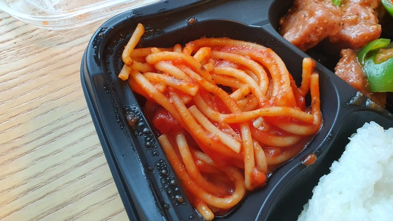 스파게티는 맵다. 얕봤는데 아주 생각보다 매운 맛이어서 깜짝 놀랐다. 하지만 금방 매운기가 사라지는 그런 정도라 걱정할 필요는 없다. 오히려 다른 반찬들이 다소 기름지거나 달달한 맛에 더 가깝기 때문에 입가심용으로 아주 좋다고 할 수 있다.