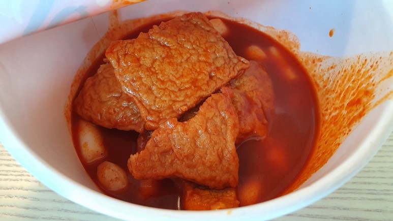 보이는 것처럼 식감이 그리 좋진 않았다. 떡 자체는 쫀득했지만 어묵의 상태가 오묘한 탓에 부조화가 느껴진다고 해야하나? 서로 잘 섞이지 않고 겉도는 느낌이 강하게 들었다.