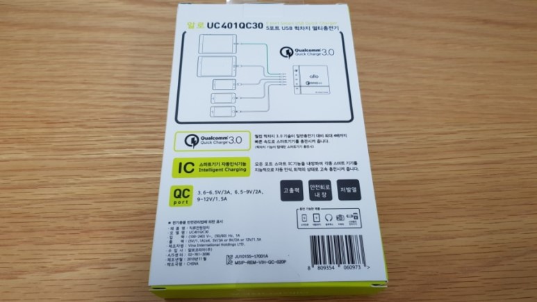 알로 5포트 USB 퀵차지 멀티충전기 UC401QC30 라는 제품입니다.