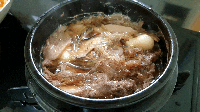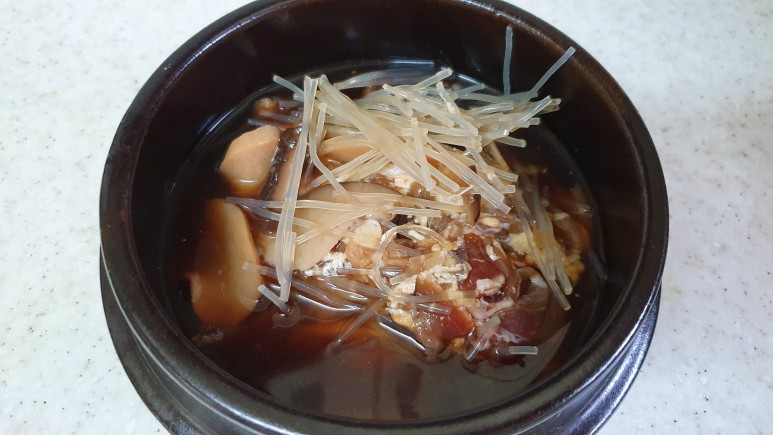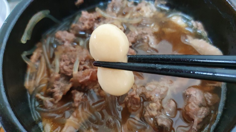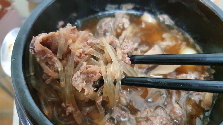 당면도 꽤 많이 들어있고, 버섯과 조랭이떡과 불고기까지 아주 꾹꾹 담겨있다는 게 특징이다.
