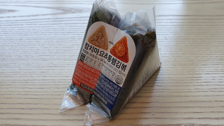씨유에는 두 개를 묶어서 파는 삼각김밥이 있다.