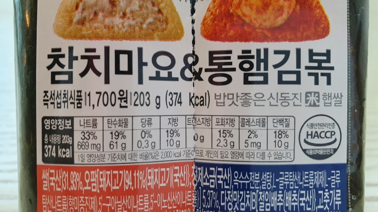 얇다고 하긴 그렇지만 삼각김밥 스케일에 비하면 역시 아쉬운 감은 없잖아 있다.
