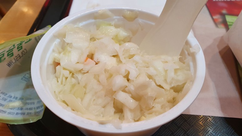 그냥 아삭아삭 신선한 코울슬로맛이다. 오랜만에 먹으니 게 눈 감추듯 먹었다는 건 안비밀.