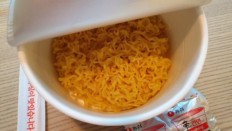 컵누들 같은 제품도 물론 좋고 무진장 맛있긴 하지만, 그건 정말 간에 기별도 안 가는 제품이라 나처럼 그래도 어느 정도 적당히는 배를 채울 사람이라면 신라면 건면 사발을 추천해본다.