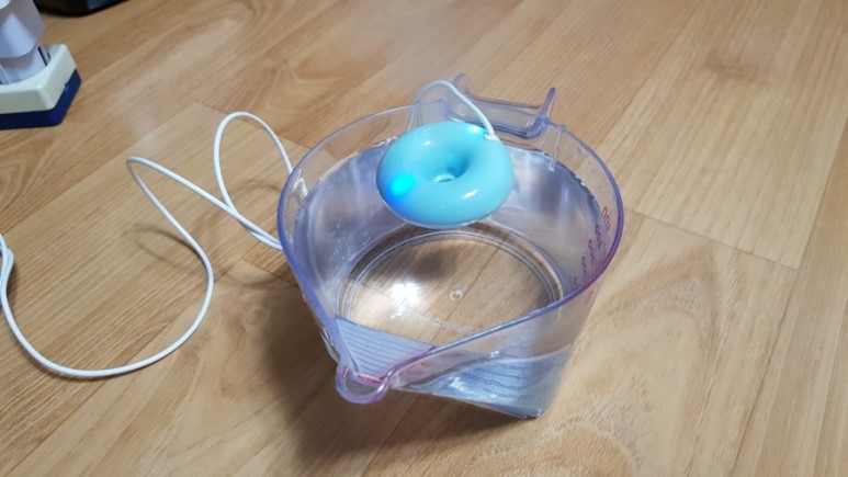 케이스를 열면 작은 도넛형의 가습기 등장!