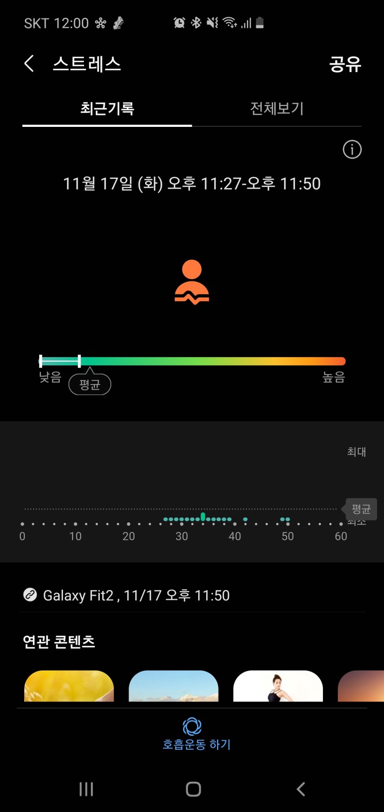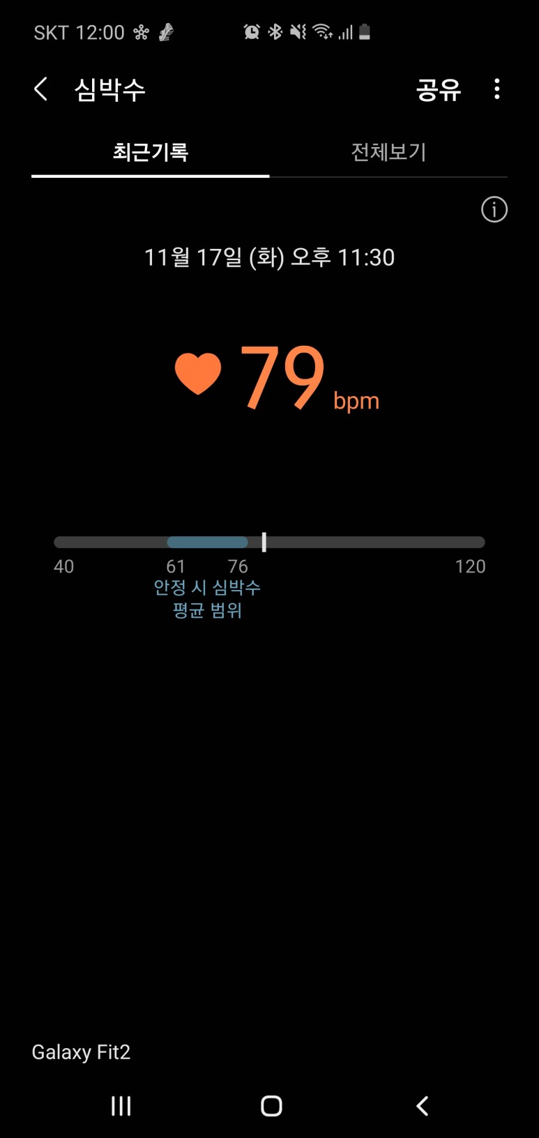 갤럭시핏2는 위와 같은 정도의 정보를 확인할 수 있다.