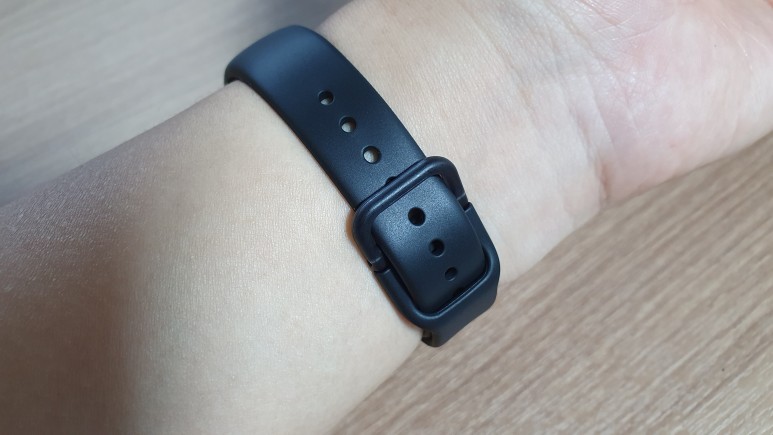반대로 핏감은 정말 좋았다. 완전 둥글지 않고 약간 반달 형태로 제작된 스트랩이 손목을 착 감아줬다. 미밴드5가 다소 손목에 이물감이 느껴지고 신경이 쓰였다면, 갤럭시핏2는 손에 착 감겨서 붙어있기 때문에 가끔 손목에 스마트밴드를 착용하고 있다는 사실을 까먹을 정도다.