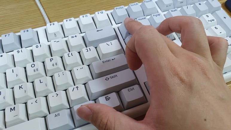 미세하게 키캡의 높이가 낮다. 그로 인해 타이핑하는 느낌에 차이가 있다. 회사에서 원래 사용하던 저가형의 멤브레인 키보드보다 낮다고 해야하나? 때문에 처음에는 다소 어색함을 느낄 수 있다.