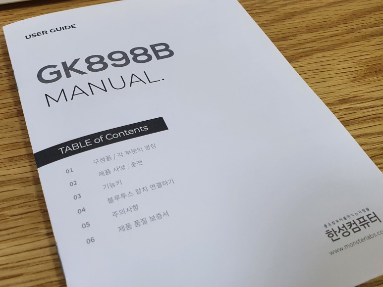 그럼에도 불구하고 한성컴퓨터 GK898B 무접점 키보드를 구매하게 된 이유는 블루투스 기능이 달린 키보드이기 때문이었다. 기본적인 동작은 유선으로 할 수 있다. 그리고 편의에 따라 펑션조작으로 최대 3개까지 간편하게 블루투스 연결 전환을 할 수 있다.