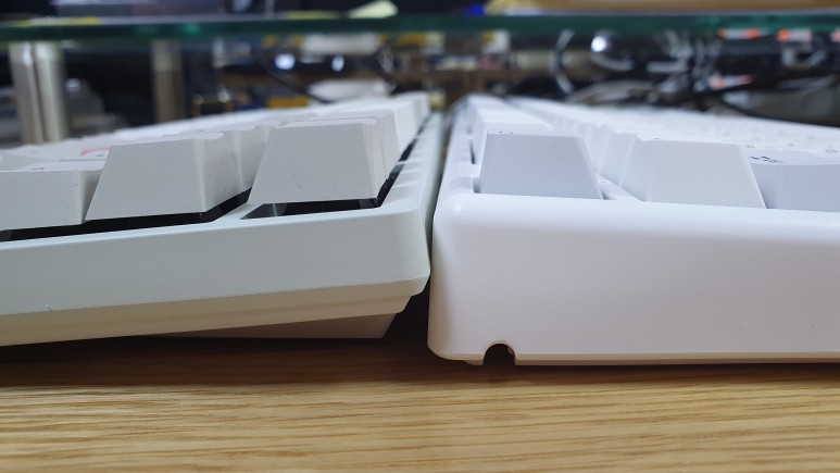 화이트가 한성컴퓨터 GK898B 무접점 키보드이고, 그레이가 기존에 사용중이던 토체티 키보드이다.