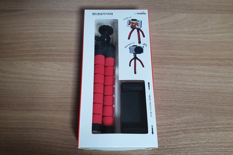 제품 구성은 삼각대와 휴대폰 거치대다.