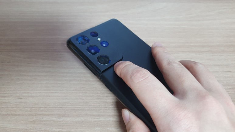 갤럭시 S21 울트라의 카메라는 정말 웅장하다. 배치와 디자인이 변경되었기 때문에 카툭튀가 다소 줄어든 느낌이 들었지만 내려놓고 보면 덜컥거리는 것은 여전히 카툭튀임을 알 수 있게 해준다. 물론 사진으로도 바로 알 수 있다.