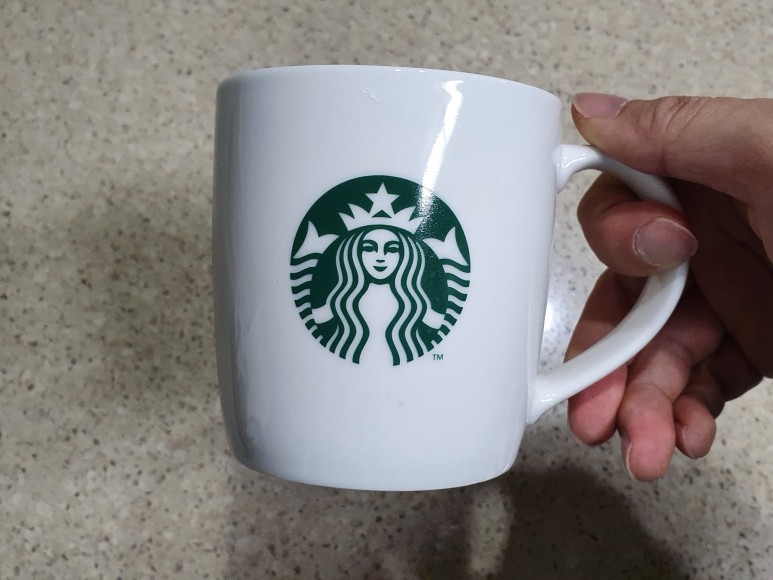 사은품으로 받은 스타벅스 머그잔입니다. 집에서 스타벅스 머그잔으로 스타벅스 캡슐커피를 내려마신다니. 생각만 해도 설레는 순간이었습니다.