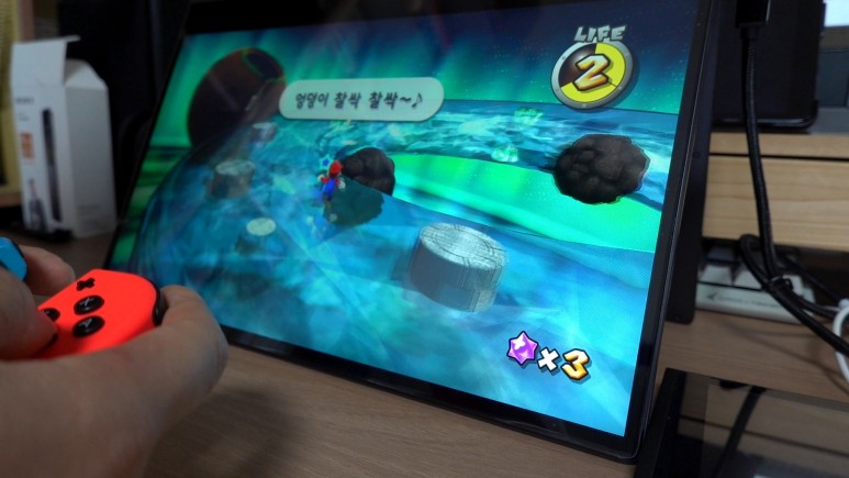 실제로 닌텐도 스위치를 독에 끼우지 않고 본체와 플립북을 그대로 연결한 상태에서도 화면 출력이 잘 되는 것을 확인할 수 있었습니다. (참고로 본체에 화면 출력 기능 자체가 없는 닌텐도 스위치 라이트는 불가능합니다.) 그 외에도 유튜브, 넷플릭스, 왓챠 등의 영상을 플립북으로 출력해서 큰 화면으로 즐길 수 있는 것도 장점이죠.