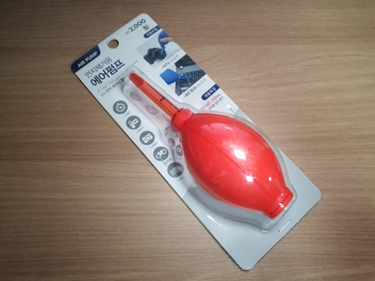 다이소 쇼핑을 하다가 우연히 발견하고는 하나 구매해왔습니다. 여기에 천에 알코올이 묻은 센서 클리너까지 있으면 금상첨화겠지만 저는 아직 센서 상태가 양호하기 때문에 일단 이 에어펌프만 구매해봤습니다.