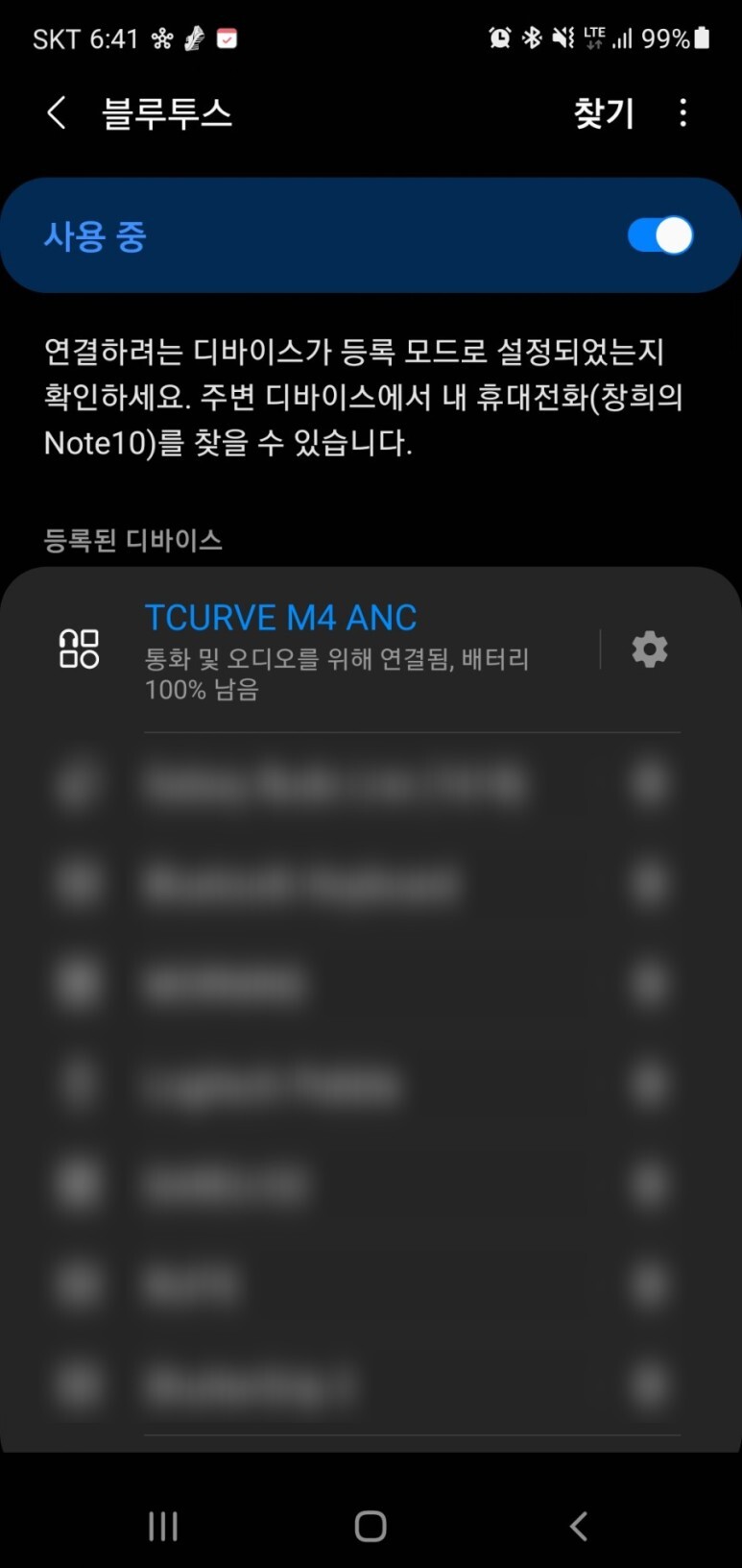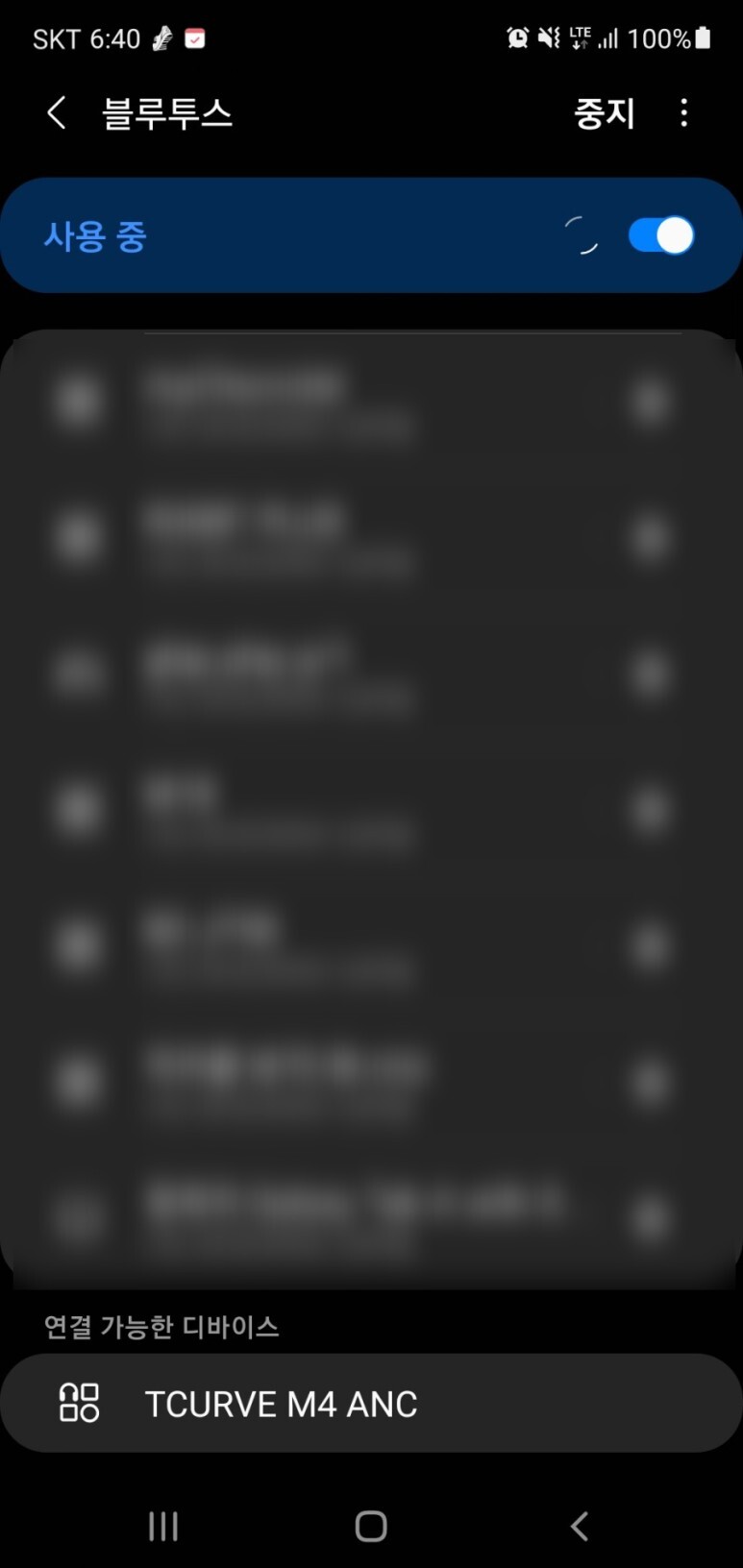 이때 연결하려는 스마트폰의 블루투스 페이지로 들어가보면 TCURVE M4 ANC라는 디바이스가 나타나있는 것을 확인할 수 있습니다. 이것을 누르면 바로 페어링이 완료됩니다.