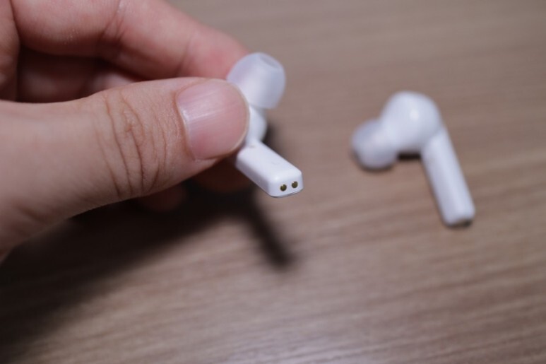 이어폰은 콩나물 모양을 하고 있습니다. 하단의 포고핀을 통해서 케이스 안에 수납하면 자동으로 충전되는 방식도 대부분의 블루투스 이어폰과 동일하기 때문에 익숙할 것입니다.