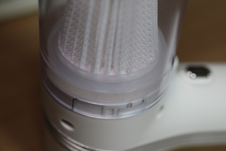 중앙에 뚫린 구멍에 맞춰서 살짝 힘을 주면 쏙 들어갑니다. 필터를 조립하고 손을 코에 대보면 꽤 진한 향이 묻어나는 것을 확인할 수 있습니다. 그런데 이게 또 엄청 진하진 않았는데요. 실제로 무선청소기를 작동할 때 필터의 향이 적당히 흐르듯이 나는 것 같은 느낌이 들었습니다.