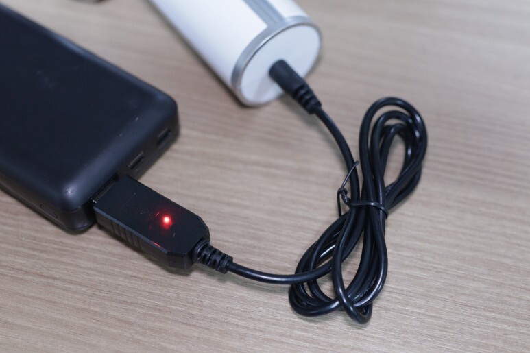 반대편은 우리가 흔히 사용할 수 있는 USB-A 타입의 단자를 사용하는데요. 충전기 어댑터를 사용할 수도 있고 보조배터리를 이용해서 충전할 수도 있습니다. 차에 놓을 경우에는 아마 시거잭에 물려서 충전하는 경우가 많겠네요.