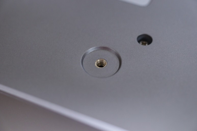 하단 앞쪽에는 각도를 조절할 수 있도록 미니미한 받침대가 있었습니다. 생각보다 많이 늘어나는 나사로 되어있었는데요. 책상 위에 간편하게 올려놓고 사용할 수도 있어보였습니다.