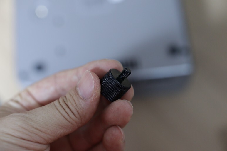 각도 조절을 하는 나사를 제거하고 삼각대 브라켓 젠더를 끼우면 제품을 간편하게 삼각대에 거치할 수 있게 됩니다.