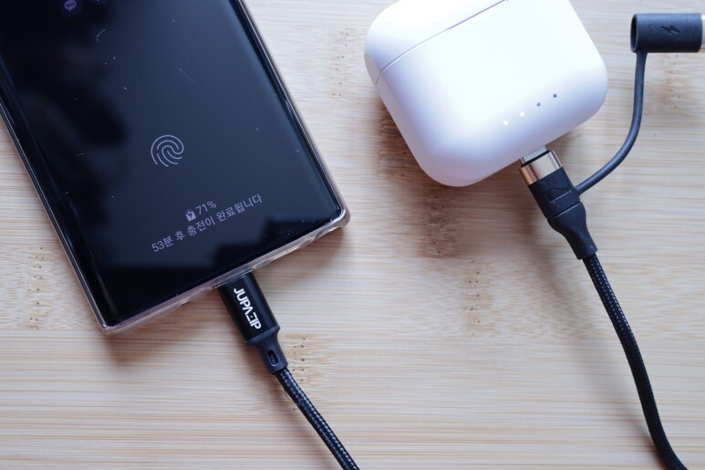 이 방식의 장점이라면 하나의 케이블로 두 제품을 한 번에 충전할 수 있다는 점이 되는데요.