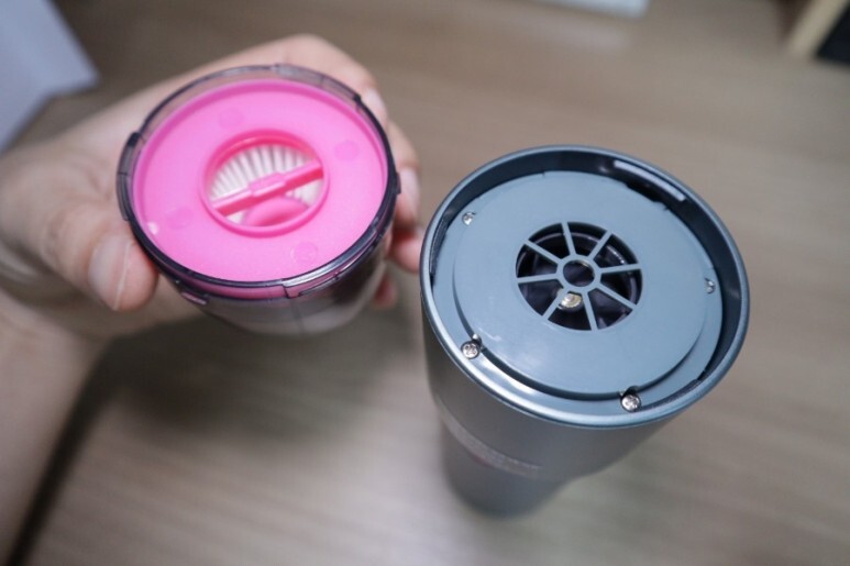 필터는 아래 손잡이 부분을 잡으면 간편하게 꺼낼 수 있는데요. 필터에 담아둘 수 있는 용량이 그리 넉넉하진 않기 때문에 그때그때 필터를 청소하고 먼지를 비워줘야하는 점이 있지만 워낙 간편하게 열 수 있어서 자주자주 비우기에 귀찮음이 전혀 없습니다. 또한 물세척도 가능한 필터이기 때문에 그대로 씻어서 잘 말리면 되는 아주 손쉬움이 있습니다.