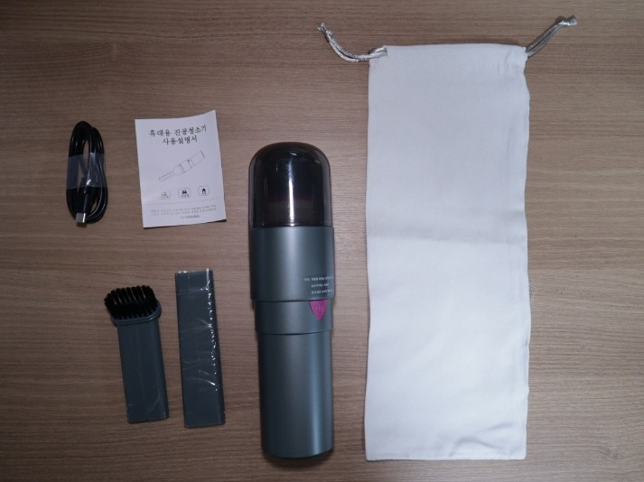 사이즈가 빡빡하지 않고 넉넉해서 저걸 다 넣어도 남는 정도의 자유로움이 느껴졌습니다. 파우치의 천 재질은 그냥 평범하고 마감이 쏘쏘했지만 그렇다고 해서 엉터리인 건 아니었어요. 일장일단이 있다고 쓰려다 보니 또 단점까진 아니어서 만족하기로 했습니다. 그리고 사실 우리에게 중요한 건 청소기잖아요?