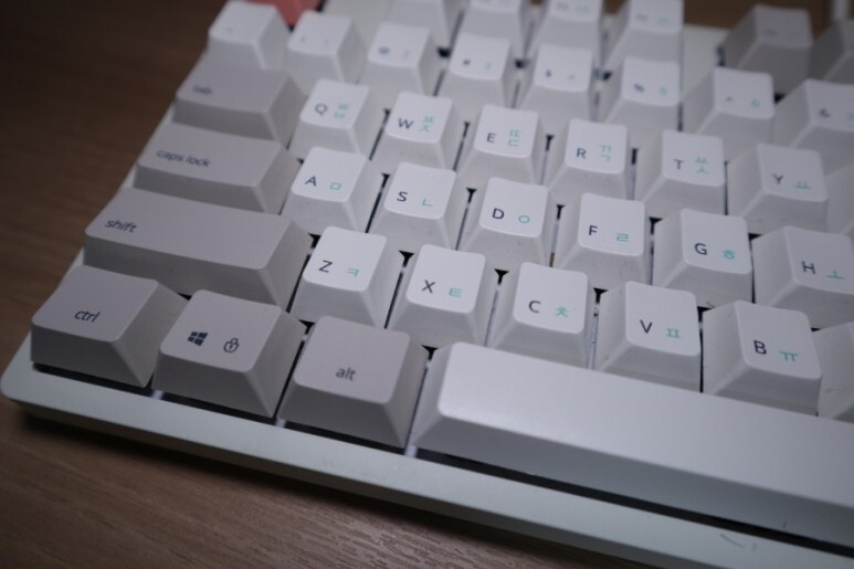 가장 무난하게 시연할 수 있는 것은 제가 하루도 빼놓지 않고 마르고 닳도록 사용하는 키보드입니다. 그렇게 열심히 사용하고 사용하지 않을 때는 덮개도 덮어놔도 기어코 먼지가 쌓입니다. 열심히 청소를 해줘야하는 순간입니다.