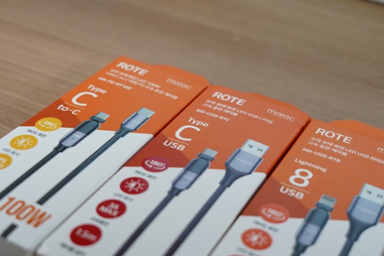 모락 로테 회전 LED USB C to C 타입 고속 충전 케이블 100W