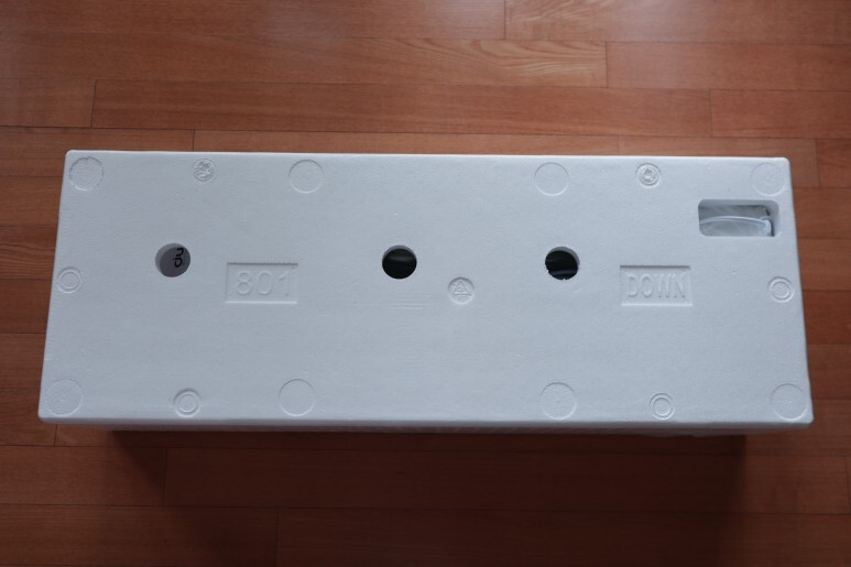 보통 스티로폼으로 포장된 제품들은 꺼내기가 여간 힘든 게 아닌데요. 다행히 손잡이가 예쁘게 있어서 어렵지 않게 꺼낼 수 있었습니다. 내부는 꽤 튼튼하게 되어있었습니다. 아무래도 얇은 모양의 타워형 제품이다보니 꼼꼼하게 외부 충격을 막아줄 수 있도록 포장이 된 모양입니다.