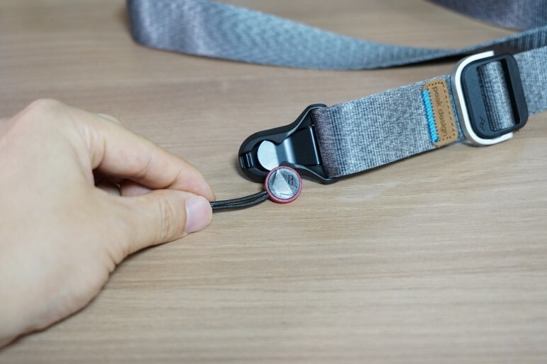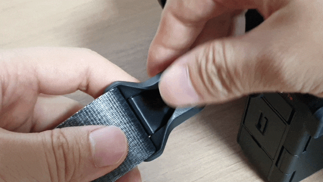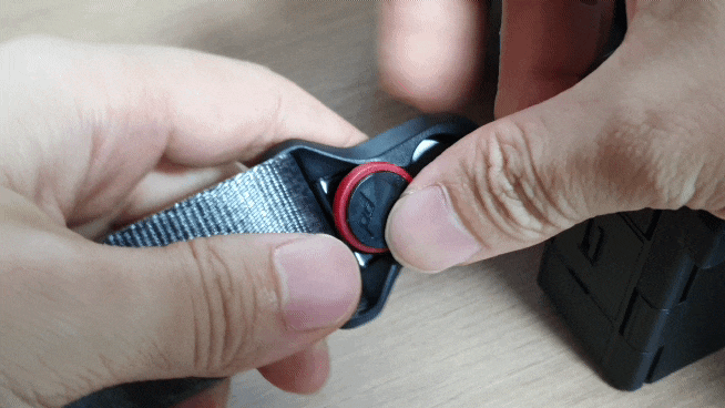체결할 때는 그냥 넣어주면 딱 맞춰서 장착이 되고요. 풀고자 할 때는 가볍게 꾹 눌러서 슬라이드하면 손쉽게 해제할 수 있습니다. 특히 삼각대에 거치해서 여러 방향으로 화각을 조절해야할 때, 영상을 촬영할 때는 이렇게 스트랩을 해제한 상태에서 활용하는 게 좋을 것 같다는 생각이 듭니다.