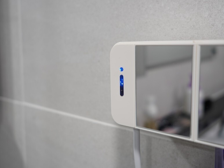 본체 좌측에는 거울과 투도어, 그리고 우측에는 양치컵을 달 수 있는 부착면과 무드램프가 자리하고 있었습니다.