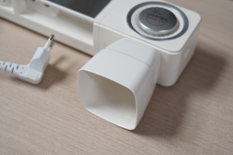 색상은 화이트입니다. 유토렉스 가정용 칫솔살균기의 모델은 다양한데요. 제가 리뷰하고 있는 이 모델이 가장 심플하고 기본기에 충실한 모델입니다. 모델명은 UTC-57MW이고 21년형 모델이라고 하네요.