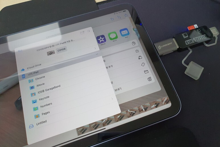 아이패드 미니 6세대가 전반적으로 C타입 USB를 잘 잡아주는 느낌도 들었는데요. 룩스핏 OTG 젠더와는 궁합이 잘 맞는다는 느낌이 들었습니다. 저걸 꽂아둔 채로 작업을 하더라도 빠질 위험이 발생할 것 같진 않았거든요.