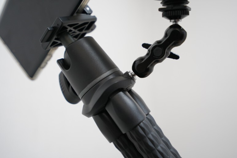 홀더에는 심지어 콜드슈도 있어서 샷건 마이크나 조명을 장착할 수 있어서 좋았습니다