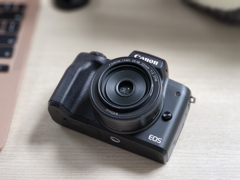 ef-m 22mm 단렌즈는 팬케이크 모양을 하고 있습니다.