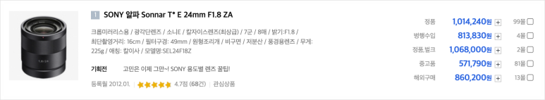 실제로 22mm정도 화각을 가진 소니 단렌즈의 경우 조리개값이 더 높거나 팬케이크 형태가 아닌 제품군으로 구성되어 있습니다.
