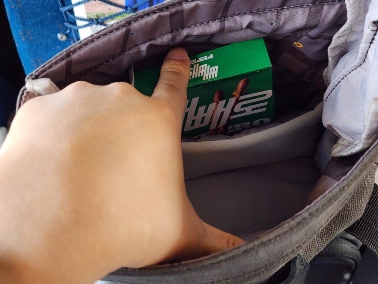 이쪽은 많이는 안 들어가지만 그래도 작은 물병이라거나 미니삼각대 같은 장비를 쏠쏠하게 넣고 다닐 수 있습니다.