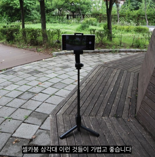 휴대성만 놓고 보면 폰카+셀카봉 삼각대 조합이 좋긴 합니다. 단지 카메라 거치를 할 수가 없고 폰카도 넘어져서 문제일 뿐이죠.