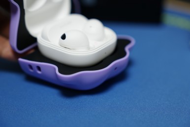 예전에 사용하던 고무 재질의 케이스들은 안쪽에 양면 테이프가 있어서 버즈 케이스가 떨어지지 않도록 고정하는 방식이라면, 이 메타몽 케이스는 튼튼하다보니 버즈 케이스 자체를 끼워서 딱 잡아줍니다.
