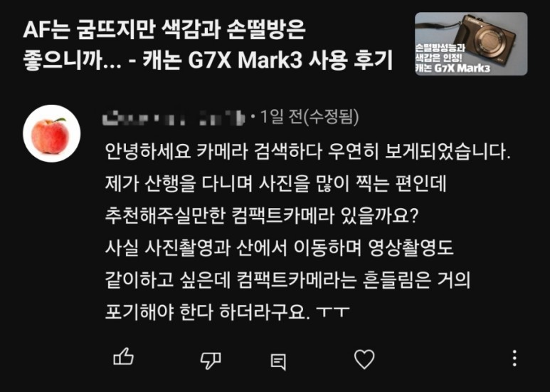 제 유튜뷰에 이런 질문이 달렸습니다.