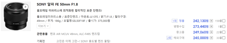소니 네이티브 50mm 단렌즈 중에는 1.8 렌즈가 있지만 연식이 오래 되었고 평가가 좋지 않은 편입니다. 그래서 출시할 수 있었던 것 같습니다.
