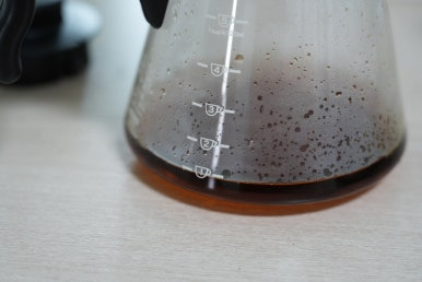 서버에 천천히 드립커피가 내려집니다. 한 잔을 딱 채우면 마시기 좋은 양과 풍미의 커피가 탄생합니다.