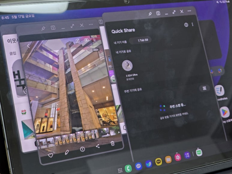 갤럭시 S9으로 넘어오면서 드디어 퀵쉐어를 절찬 사용하게 되었습니다. 퀵쉐어는 갤럭시의 에어드랍인데요. 덕분에 이제는 사진이나 영상 편집을 위해 갤럭시 탭에 옮겨놓는 것도 아주 편해졌습니다.