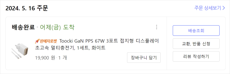 충전을 바로 해야하는데 빠르게 받아서 쓰기에는 쿠팡의 로켓배송이 가장 좋았으니까요.